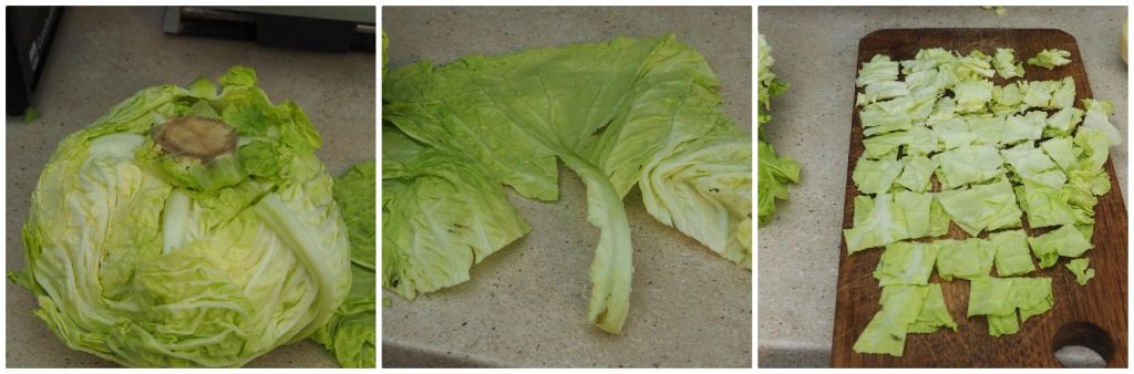 Was, verwijder het harde deel van de savooikool en snijd het in blokjes.