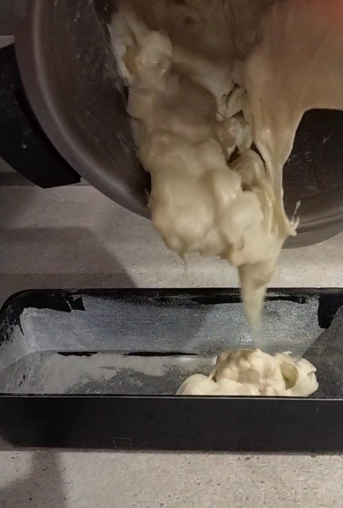 Beboter en bebloem een plumcakevorm van 27×10 cm. Giet het beslag erin en probeer het glad te strijken.