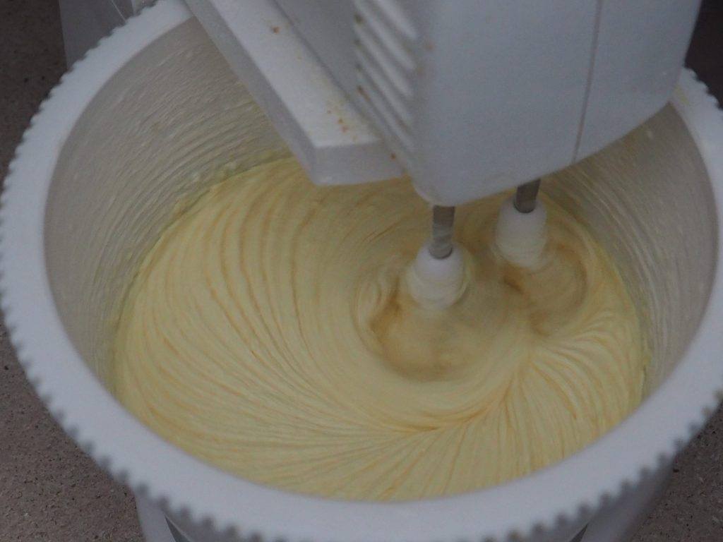 Dit mengsel wordt “quatre quarts” genoemd, omdat de ingrediënten 4 zijn en in gelijke hoeveelheden. Begin met het wegen van de eieren en voeg vervolgens in dezelfde hoeveelheden bloem, boter en suiker toe.