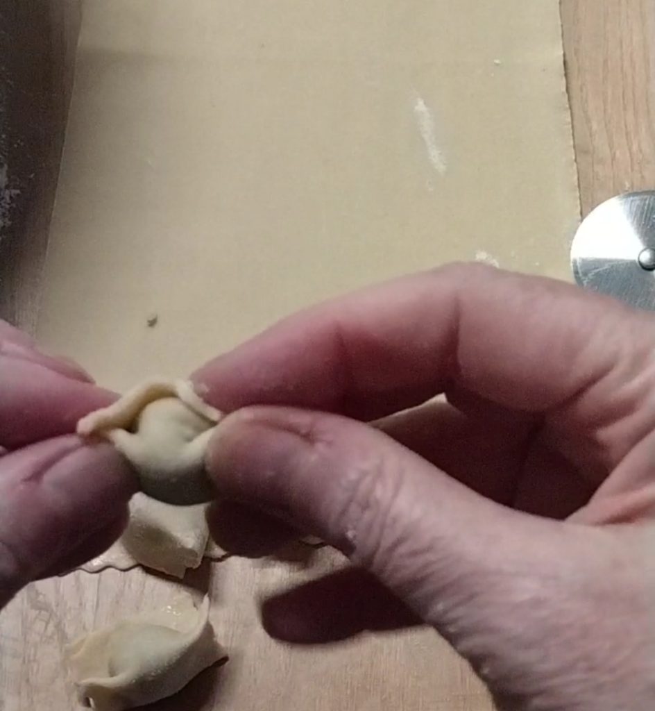 Ik raad je aan om ze nogmaals aan de zijkanten te sluiten om ze goed af te sluiten, maar druk de vulling niet plat, alleen de randen van het deeg. Als je deeg over hebt, kun je tagliatelle maken.