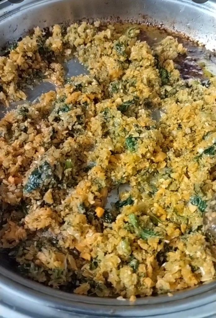 - 150 g gekookte groenten (raapstelen of spinazie)