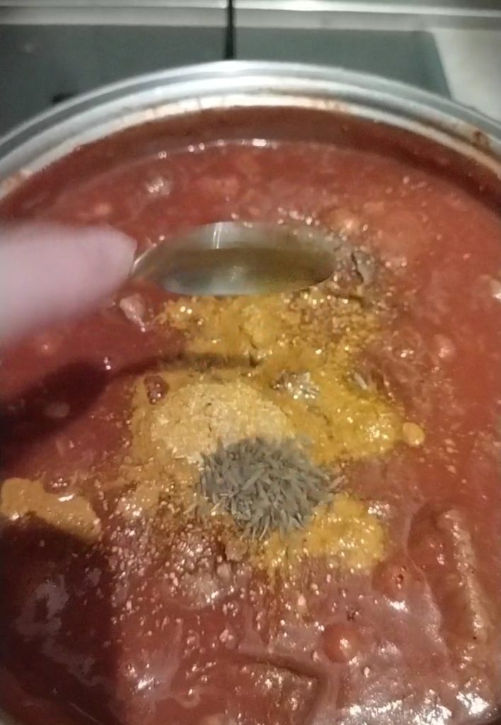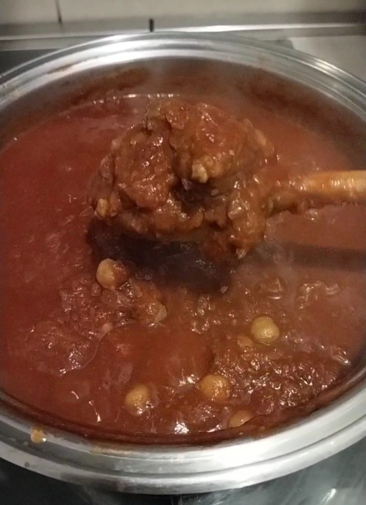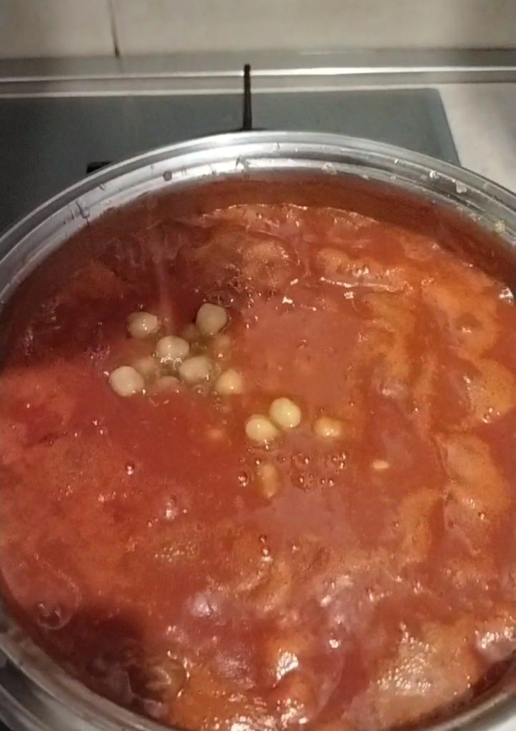 Voeg nu de kikkererwten toe, ik heb ook het water in het blik toegevoegd.