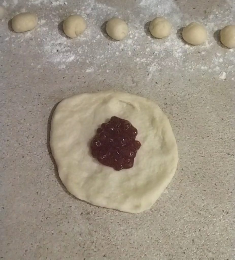 En daar verschijnen de Sneeuwpoppen gevuld met jam, mooie en smakelijke poppen, om op uw kersttafel te zetten. Het zijn kleine brioches gevuld met jam, die u naar uw smaak kunt kiezen. Het belangrijkste is dat ze niet te vloeibaar zijn, anders loopt u het risico dat het uit de poppen stroomt. U kunt de hoeveelheid gist aanpassen afhankelijk van de tijd die u heeft, met de hoeveelheid in het recept duurt het rijzen slechts twee uur.