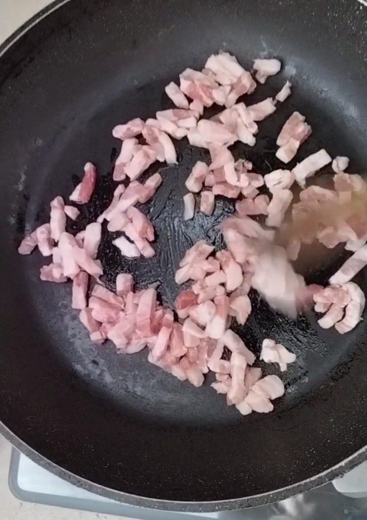 Haal de spaghetti met een tang uit de pan en doe ze direct in de pan met de guanciale. Meng en zet het vuur uit.