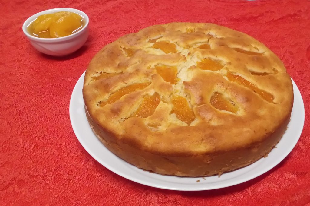 Plumcake met yoghurt en perziken op siroop