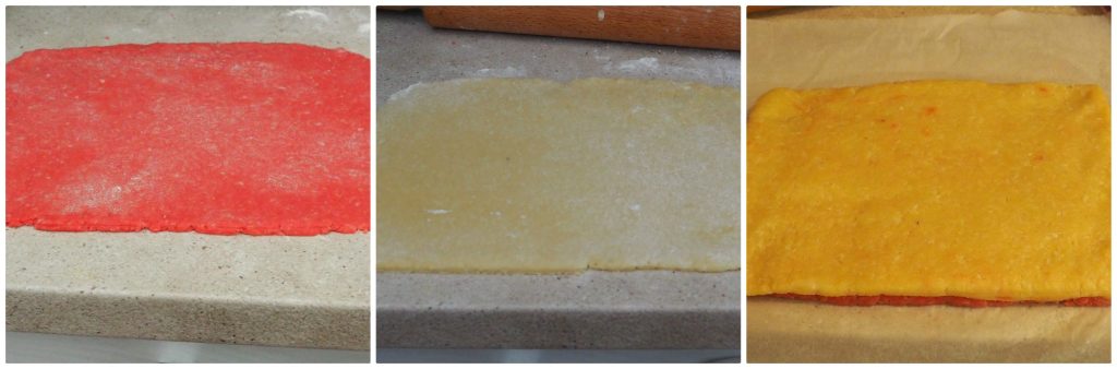 • Haal de deegballen uit de koelkast, leg ze op een met bloem bestoven werkblad en rol elk deeg uit met een deegroller. U moet twee rechthoeken van 21×16 cm maken, 1 cm dik.