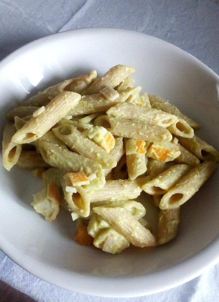 Volkoren penne met surimiragout