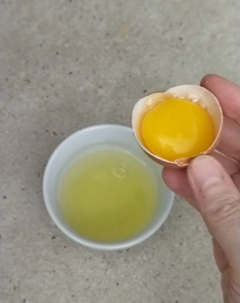 Schei eerst de eidooiers van het eiwit. Doe de eiwitten in een bak en de dooiers in een kom.