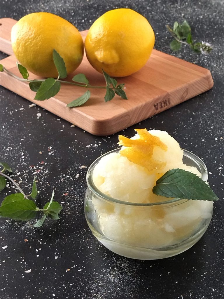 Ik hou van sterke smaken, dus deze granita heeft een uitgesproken citroensmaak, als je een minder intense smaak wilt, raad ik aan om evenveel water als citroensap toe te voegen.