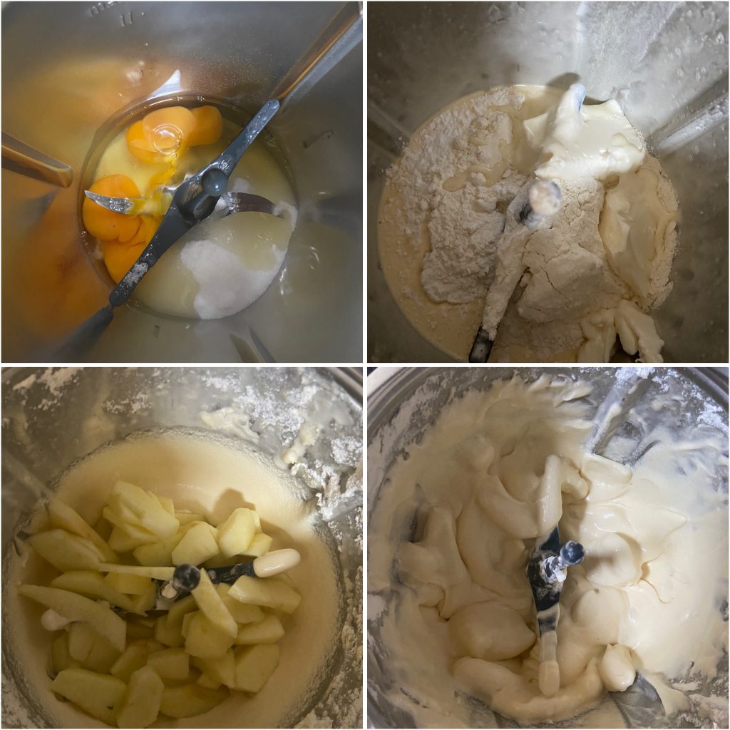 • Voeg de in blokjes gesneden appels toe en meng met een houten lepel.
