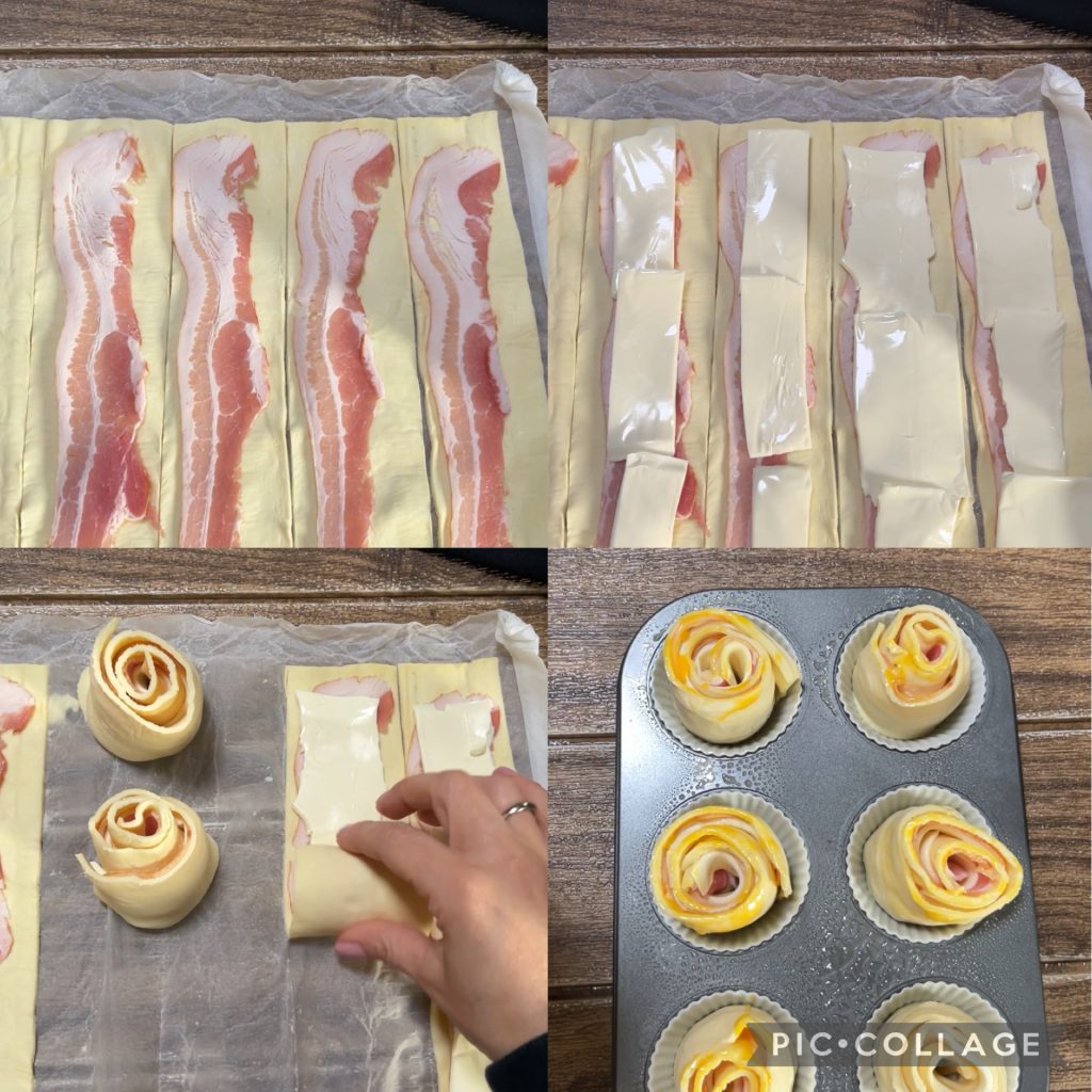 Onze bladerdeegmuffins met lange bacon zijn klaar.