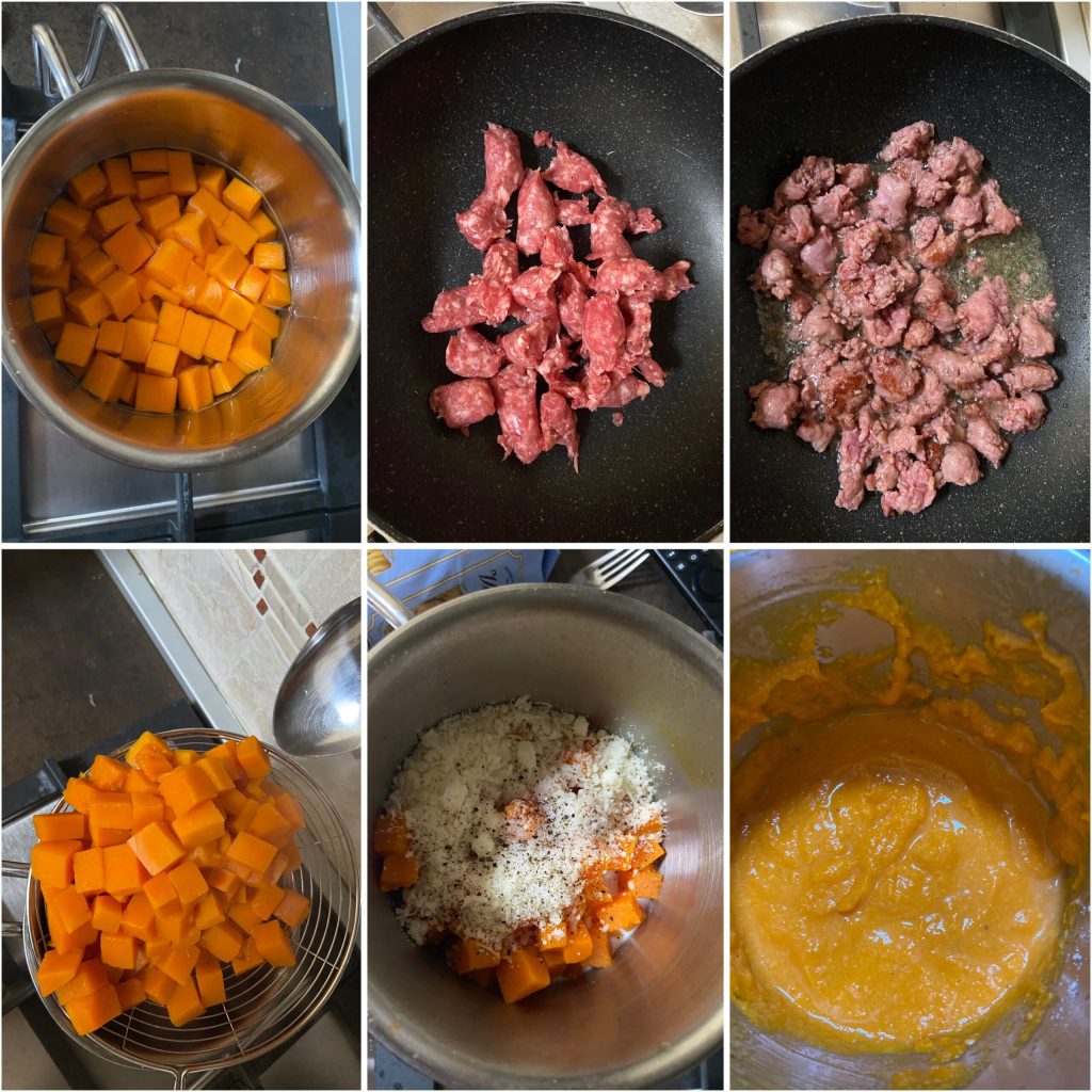 Zodra het gaar is, voegen we de eerder bereide pompoencrème toe.