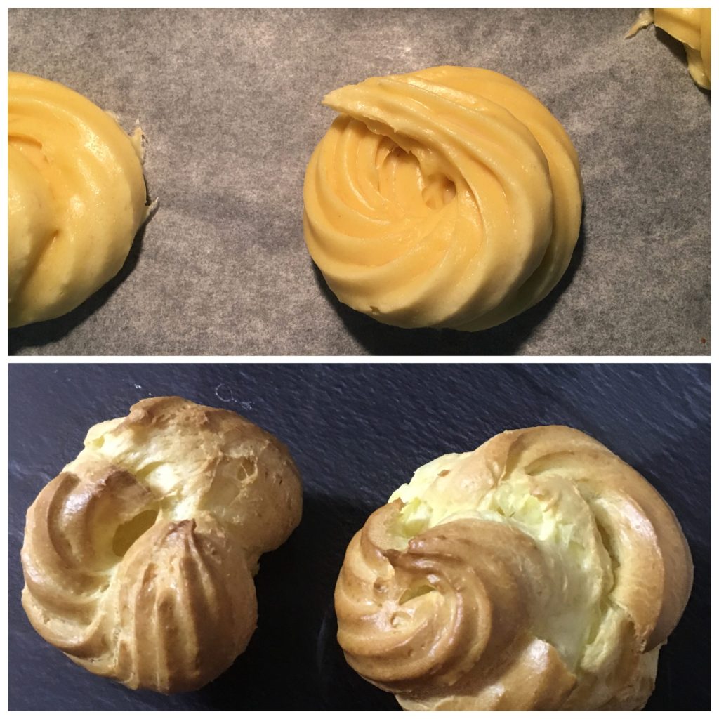 Ik heb ze gevuld door ze doormidden te snijden en met behulp van een spuitzak te vullen met roomkaas.