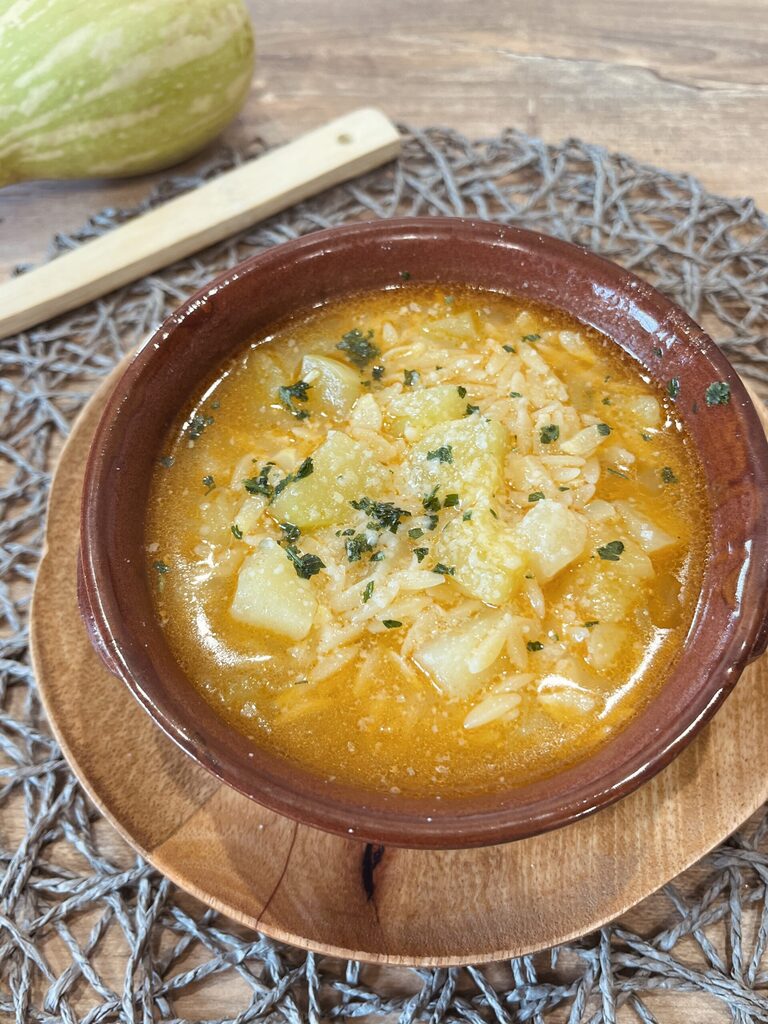 Het is een groente met een delicate smaak, die zich leent voor vele bereidingen. Vandaag gebruiken we het voor een van mijn favoriete comfortfood: de soep met trompetcourgette en aardappelen, een eenvoudig, romig en smaakvol gerecht.