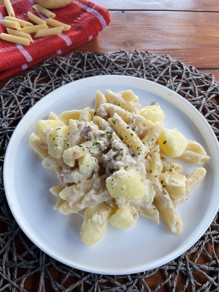 Heb je ooit romige pasta met aardappelen en tonijn geprobeerd? Het is een van die slimme gerechten om de koelkast leeg te maken, maar bijzonder smakelijk!