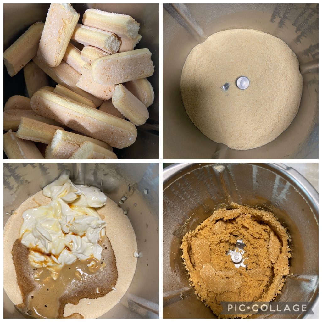 Voeg de mascarpone en de gecondenseerde melk toe en meng ongeveer 20 seconden.