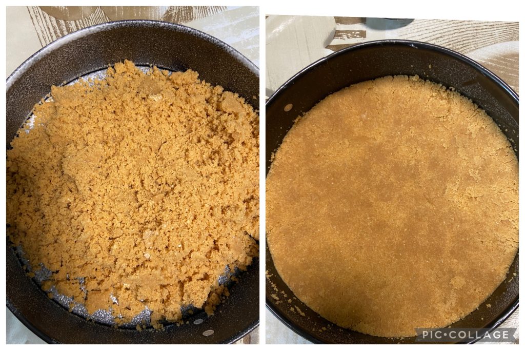 • Giet het mengsel in een springvorm en druk goed aan met de achterkant van een lepel.