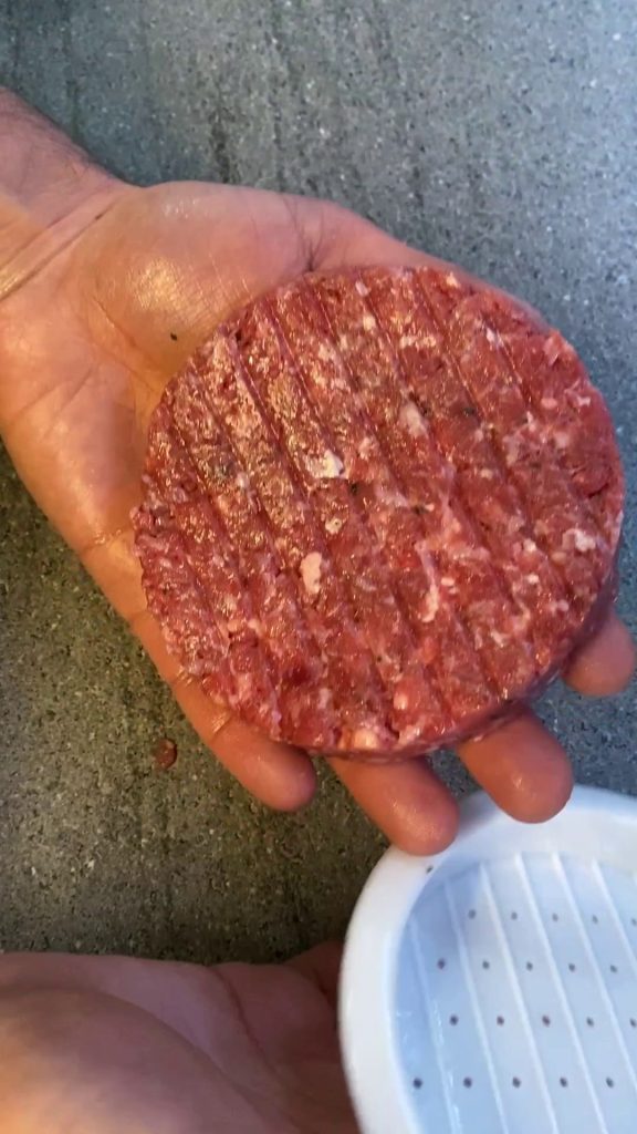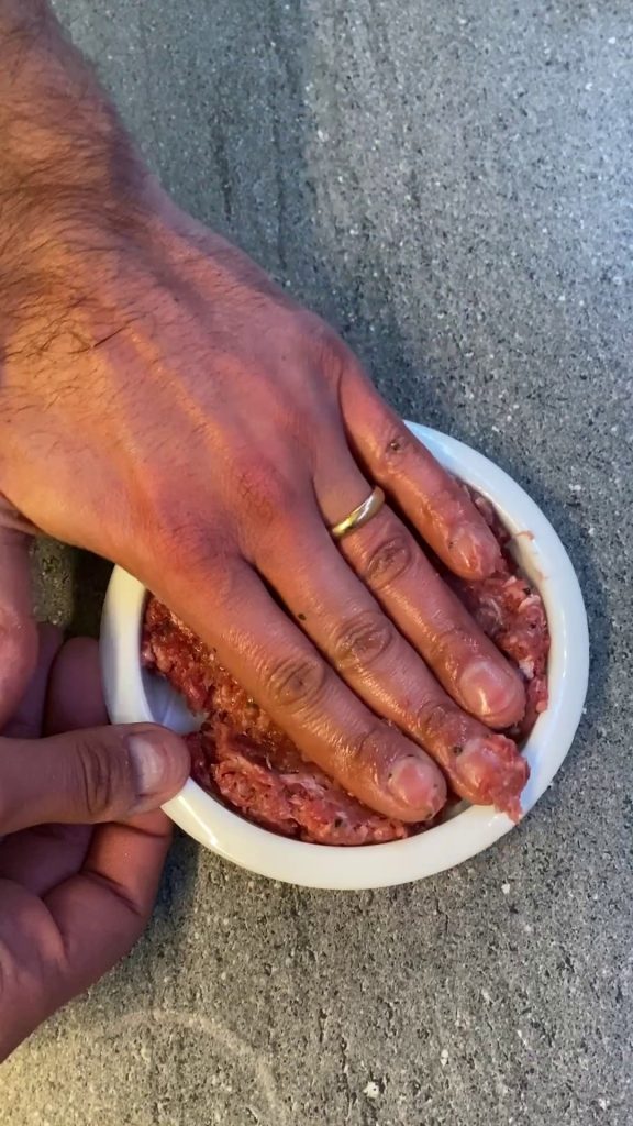 Om te voltooien, pers met de vorm en haal de hamburger uit de vorm voordat je gaat koken