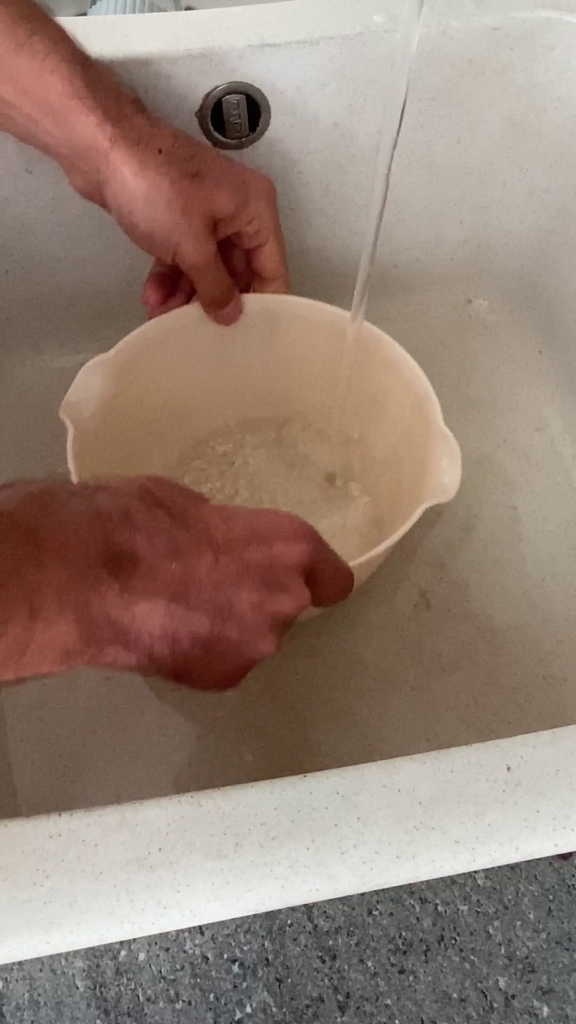 Wanneer het water helder is, laat de rijst dan uitlekken en laat het minstens 20 minuten rusten