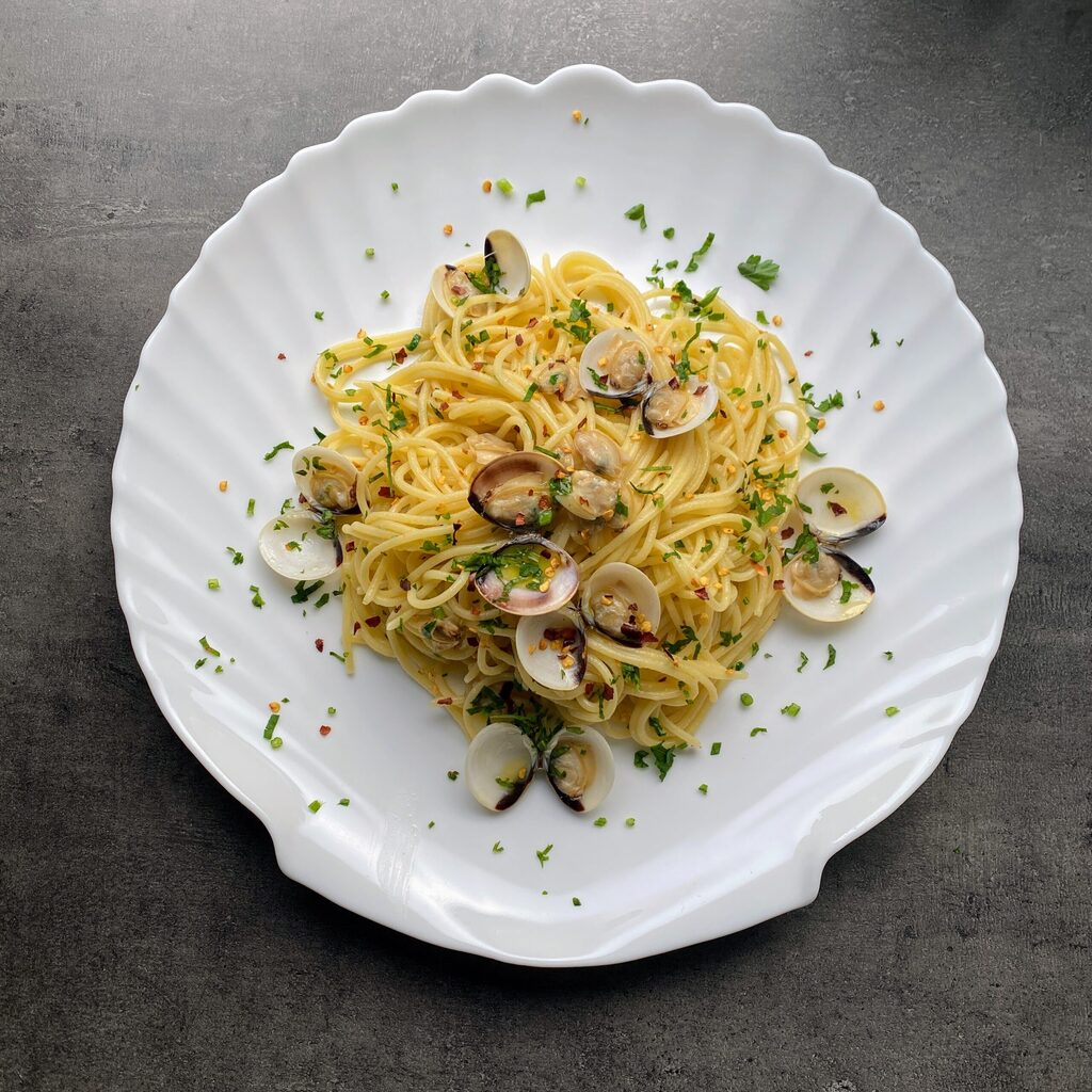 Ik weet het, ik verzin niets nieuws, maar hier hebben we het over een onmisbare Italiaanse klassieker! In dit recept stel ik je de spaghetti alle vongole op een heel eenvoudige manier voor, essentieel zou ik zeggen. Iedereen maakt het zoals hij wil, romig, met toevoeging van cherrytomaatjes of met of zonder chilipeper. Hoe vind jij het lekker? Als je geen voorkeur hebt, volg dan dit recept en ik weet zeker dat het je geweldig zal bevallen!