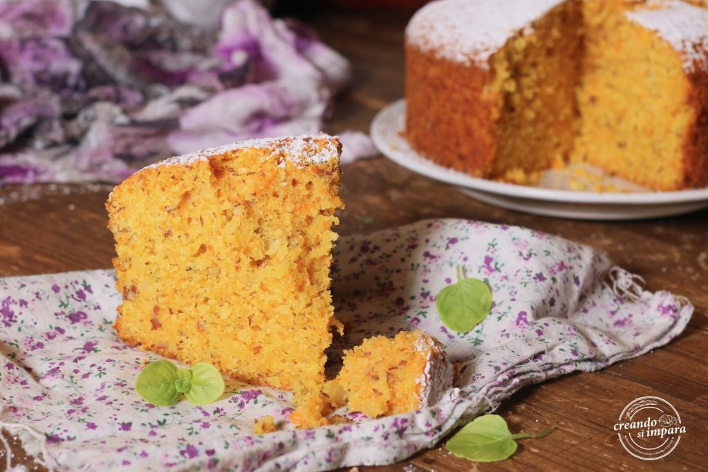 Worteltjestaart met amandelen, een klassieke, lichte, zachte, vochtige en altijd heerlijke cake. Het is een perfect dessert voor het dagelijks ontbijt, om te vergezellen met een goede kop thee, voor een tussendoortje, wanneer je zin hebt in iets eenvoudigs en lekkers.