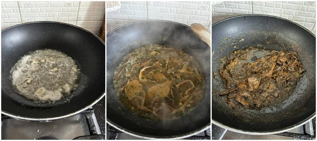 • Hak de sjalot en fruit deze in een pan met 3 eetlepels olie en 10g boter, voeg de gehakte salie en het teentje knoflook toe. Verwijder de knoflook, voeg de schoongemaakte en in stukjes gesneden eekhoorntjesbrood toe en laat ze een paar minuten sauteren. Voeg 2 pollepels kokende groentebouillon toe, die je van tevoren hebt bereid, en laat de saus indikken. Zout lichtjes, voeg de resterende boter toe en voltooi de bereiding voor een paar minuten