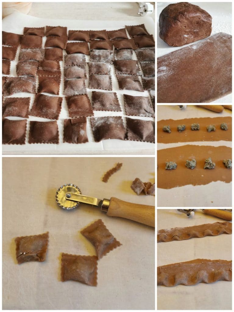 Cacao Ravioli: Een Smaakexplosie tussen Zoet en Hartig! Op zoek naar een hoofdgerecht dat je gasten zal verbazen? De cacao ravioli zijn de perfecte keuze! Een onverwachte combinatie tussen verse pasta met cacao en een rijke en smaakvolle vulling van ricotta, walnoten en gerookt spek. Geserveerd met gesmolten boter, salie en Grana Padano, zijn deze ravioli een smaakexplosie die traditie en creativiteit samenbrengt.