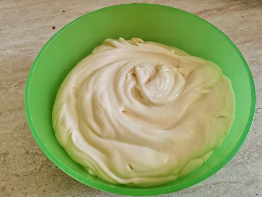 Klop vervolgens met een elektrische mixer tot je een luchtig en opgeblazen schuim hebt. De ganachecrème voor de vulling moet zacht en romig, smeerbaar zijn. Als je een stevigere consistentie wilt, kun je het enkele uren in de koelkast bewaren, afgedekt met folie.