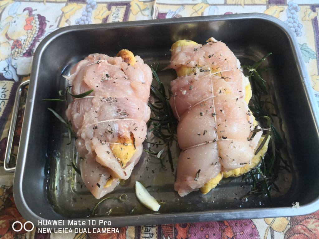 Hier is de gevulde kiprol uit de oven, een smakelijk en aromatisch hoofdgerecht dat eenvoudig en snel te bereiden is, een gerecht dat veel smaken en geuren herbergt, zoals rozemarijn en knoflook, allemaal dingen die we in huis hebben, zelfs wanneer de koelkast niets bijzonders biedt om de bereiding te verrijken. Eenmaal gebakken volstaat een eenvoudige salade of aardappelgarnituur en u bent klaar.