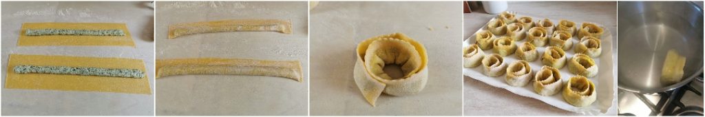 Verzegel de randen van de tagliatelle goed om te voorkomen dat de vulling tijdens het koken eruit komt.