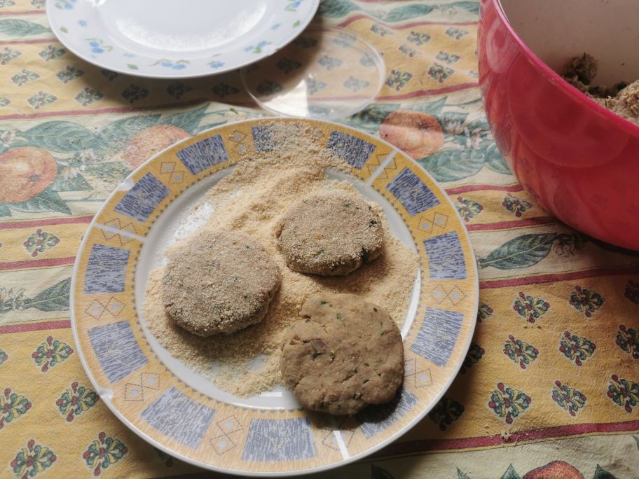 Vorm kleine balletjes, druk ze plat en haal ze door het paneermeel