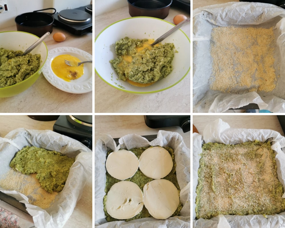 Voeg zout en peper toe, het ei en meng goed om alles goed samen te voegen. In een bakvorm van 20×30, bekleed met bakpapier, maken we een basis met het paneermeel en plaatsen daar de helft van het mengsel op, goed aandrukken. Voeg de plakken kaas toe en bedek alles met de resterende broccoli- en aardappelmengsel, bestrooi het mengsel met wat paneermeel en parmezaan, druk goed aan met de achterkant van een lepel en bak op 200° voor 20/25 minuten. Als het oppervlak goudbruin is, zet uit. Serveer onmiddellijk