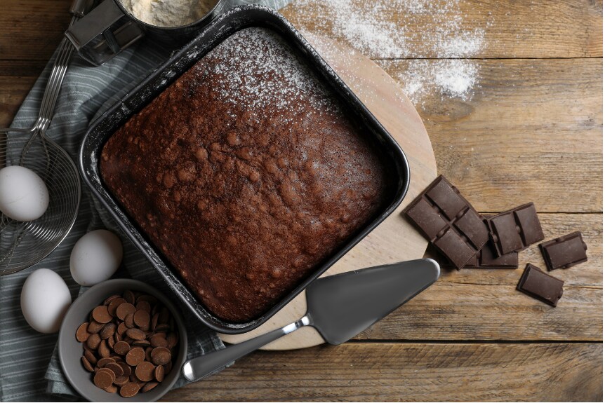 De chocoladebiscuit is de basis van dit dessert. Gemaakt met weinig en eenvoudige ingrediënten, zoals bloem, eieren, suiker en cacao, is het zacht en sponsachtig. Voor een nog lekkerder toets kan het deeg verrijkt worden met stukjes pure chocolade.