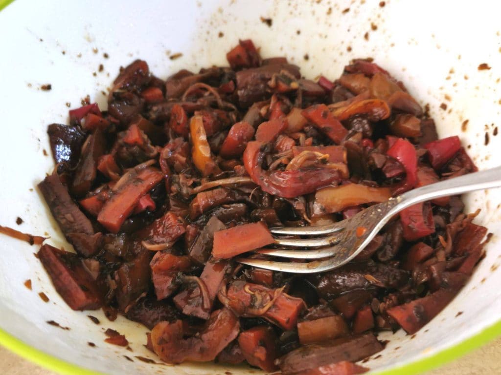 Nu gaan we de gekarameliseerde groenten bereiden, het recept kun je hier vinden. Natuurlijk kun je zowel de garnalen als de gegrilde groenten van tevoren bereiden, om de bereiding van het gerecht te versnellen