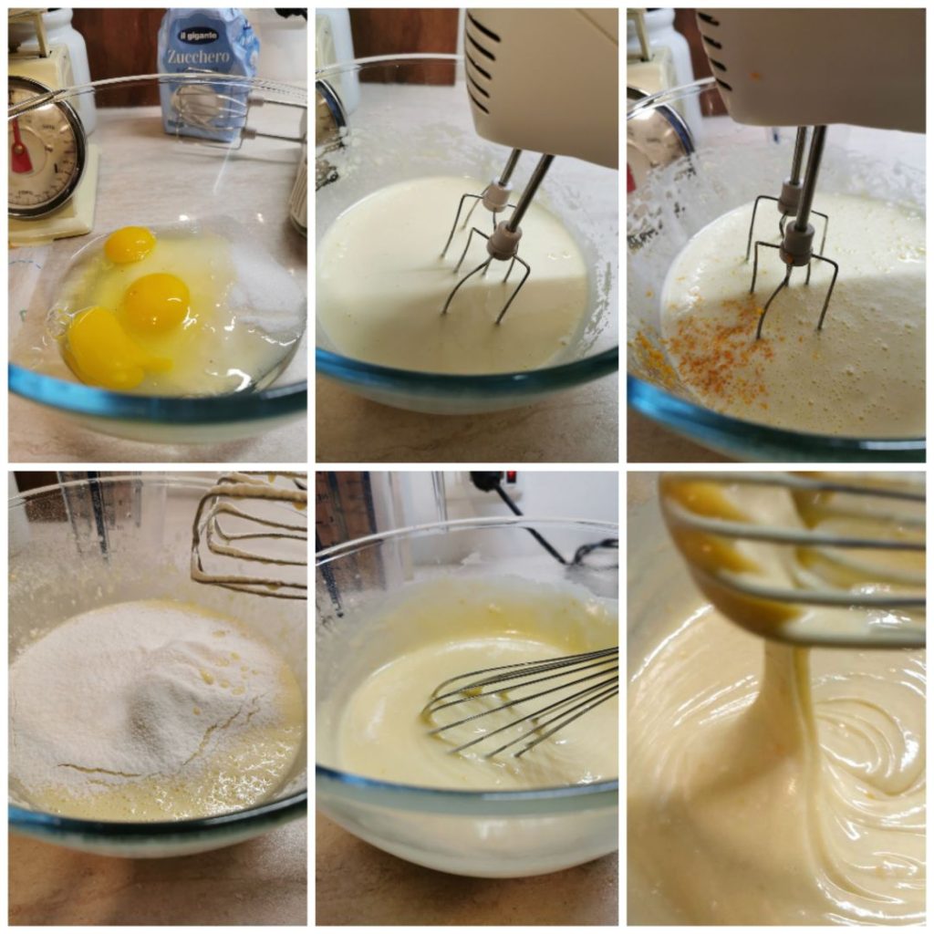 Bereid de cake. In een grote kom, doe de suiker met de eieren en klop met de elektrische mixer. Voeg de olie, yoghurt, boter, vanille-extract, sinaasappelsap, sinaasappelschil toe en klop ongeveer 50 seconden. Zeef de bloem en het bakpoeder en voeg het toe aan het cakemengsel, meng goed door elkaar.