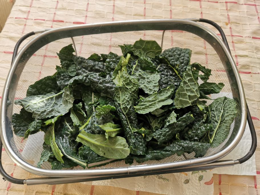 We beginnen met het wassen van de boerenkool onder stromend water, dep deze goed af met een theedoek. Op de snijplank snijd je de bladeren in grove stukjes, leg ze vervolgens in een pan met een klontje boter, en kook ongeveer 10 minuten op matig vuur, roer af en toe, voeg een snufje zout toe, en het is klaar.