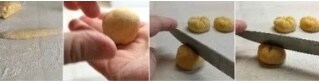 Het deeg zal zacht zijn, maar dat is precies goed, voeg geen extra bloem toe, anders worden ze hard als stenen wanneer ze gekookt zijn. Maak een bol, bestuif het werkblad met de resterende bloem en maak de rolletjes om de gnocchi te maken, snijd in stukjes, bestuif licht en maak een ronde vorm tussen de handpalmen. Laat 30 minuten rusten en vorm de gnocchi met een mes, plaats een kleine pistache in het midden.