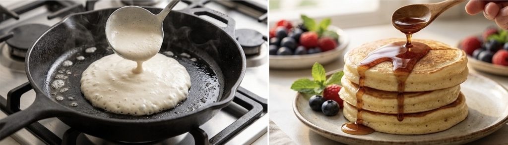 Stappen voor proteïne- en zeer lichte pancakes