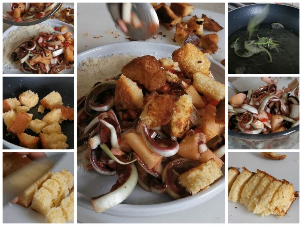 De crostini van pandoro zijn het verrassende element van dit recept: zoet en goudkleurig, voegen ze een feestelijke en knapperige noot toe die perfect samengaat met de andere ingrediënten.