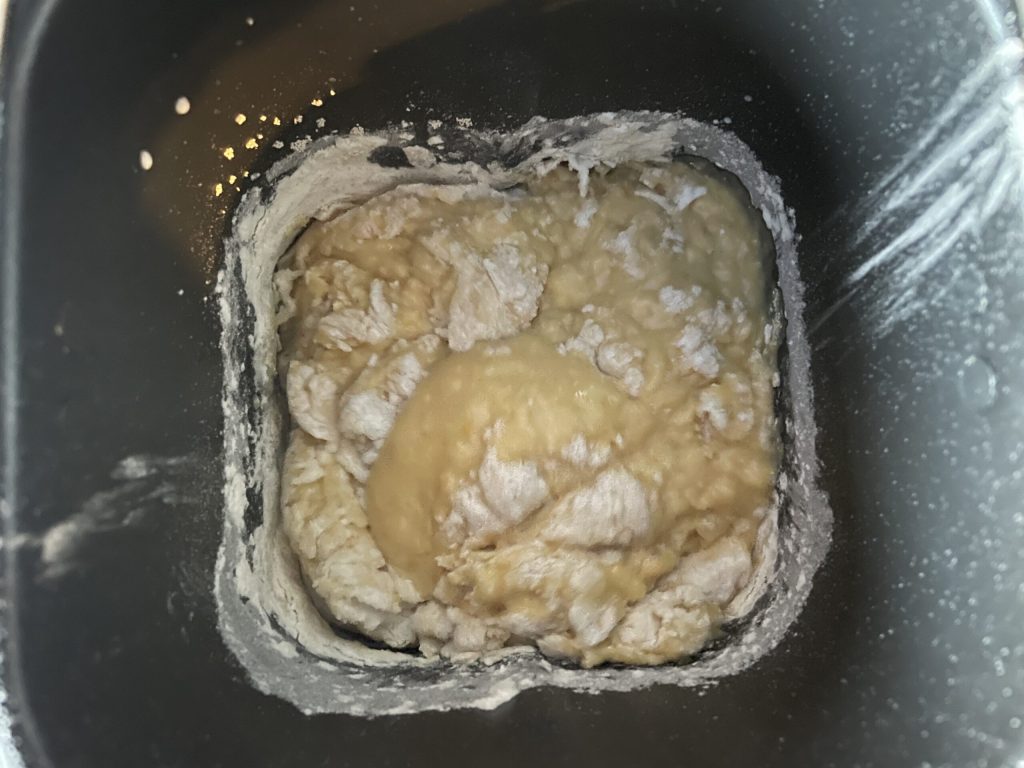 Algemene regel voor deeg in de broodbakmachine is eerst de vloeistoffen in de bak doen en daarna de droge ingrediënten.