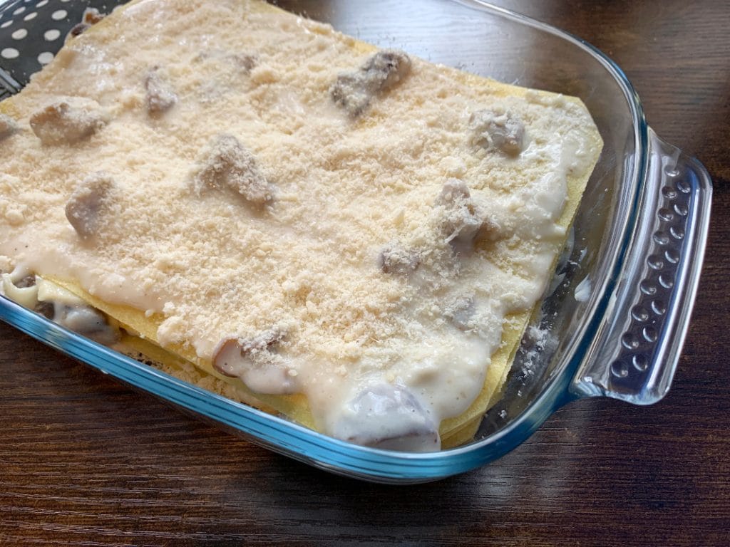 Stappen voor het bereiden en koken van lasagne met bechamel en champignons: