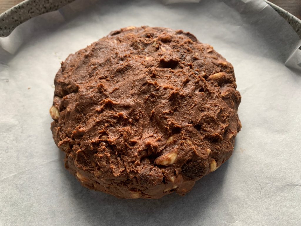 • Bekleed een bakplaat met bakpapier, doe het mengsel erop en vorm een klein brood, bak het 25 minuten op 180° graden.