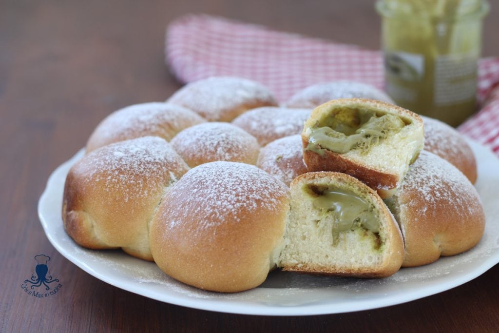 Als u een elegantere presentatie wenst, kunt u wat pistachecrème op het gebak doen en decoreren met pistachekorrels.