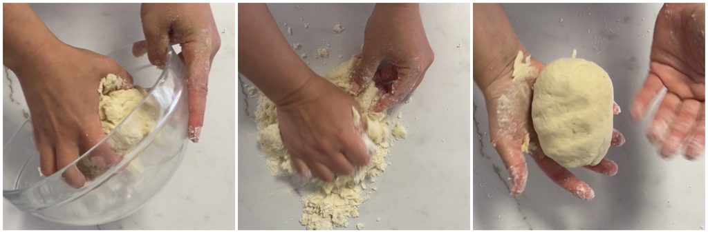 • Breng het mengsel over op een werkoppervlak en blijf krachtig kneden tot je een glad en homogeen deeg krijgt.