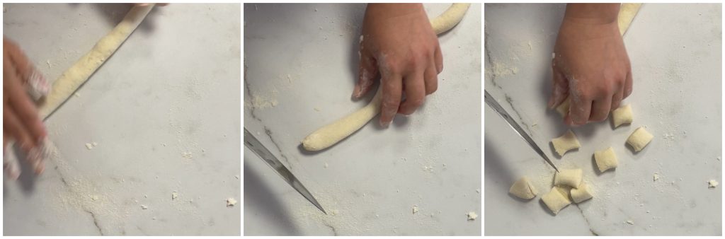 Snijd de gnocchi en beslis of je ze wilt ribben met een vork of met een gnocchiribber, of ze glad wilt laten.