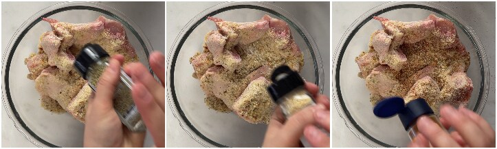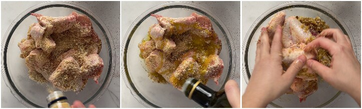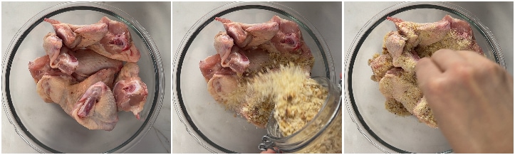 Meng met je handen of met twee lepels om de kruiden over alle kippenvleugels te verdelen.