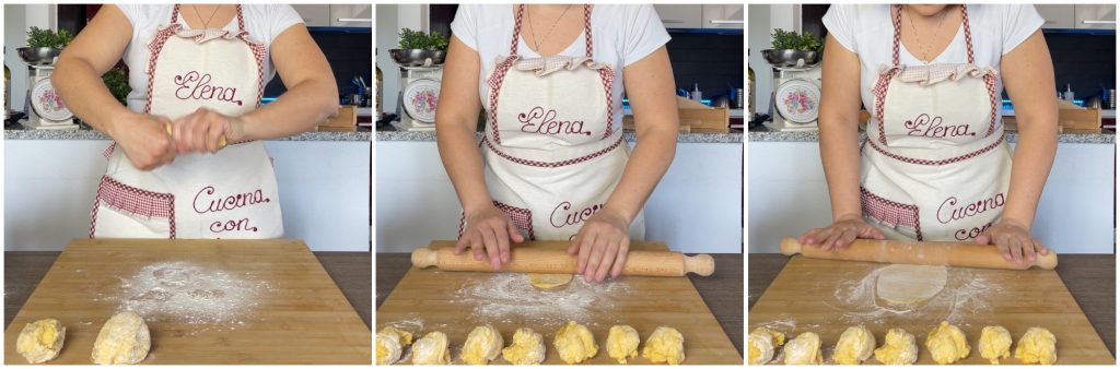 Wanneer het deeg steviger begint te worden, begin dan met de handen te kneden, steeds energiek totdat je alle bloem hebt opgenomen en een glad en homogeen deeg hebt.