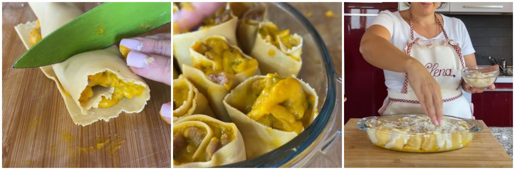 Lasagnerolletjes met pompoen en worst, een herfstvariant van mijn ASPERGEROLLETJES, heerlijk en smakelijk, gevuld met pompoen, worst en mijn ZELFGEMAAKTE BECHAMELSAUS.