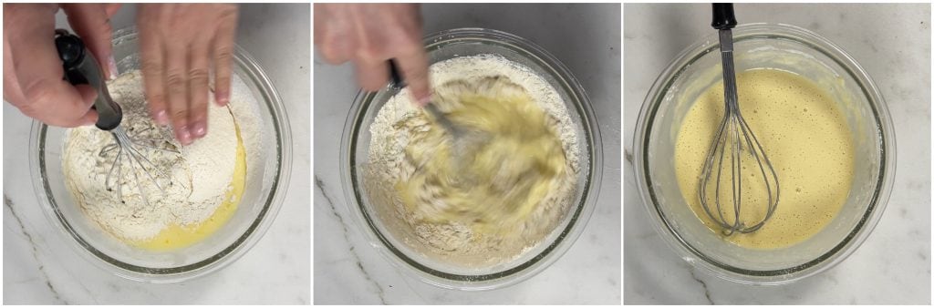 Blijf het beslag voor de pannenkoeken mengen tot een glad en homogeen mengsel ontstaat.