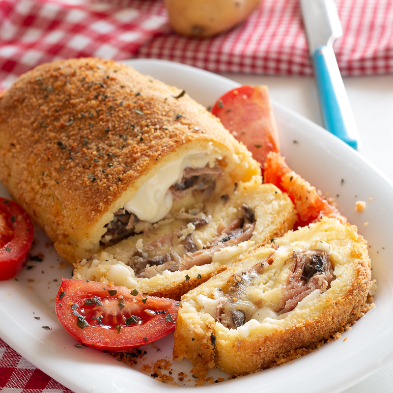 Het gehaktbrood is de volgende dag nog lekkerder. Dit aardappelgehaktbrood leent zich voor talrijke variaties: je kunt een smeltend hart van mozzarella toevoegen als je niet van scamorza houdt, of vervang het spek door spek of gekookte ham, of gebruik porcini voor een intensere smaak. Voor een vegetarische versie, laat het spek weg en verhoog de hoeveelheid champignons.